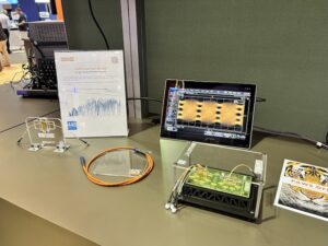 The 448 Gbps work is still in prototype stage. The industry hasn’t settled on a modulation scheme yet, creating the familiar chicken-and-egg problem: connectors and cables can’t be fully developed without test equipment, and test equipment development requires the connectors and cables. Samtec’s approach has been to lean on its RF product expertise. The company developed the Bulls Eye ISI board platform, and the new BE71A and BE130A test assemblies, which support measurements from 112 to 448 Gbps, are already being embedded by some test equipment vendors directly into instrument front panels rather than used as external fixtures. Active 448 Gbps demos were running in the booth, described as prototype-level but functional.
